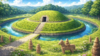角塚古墳に伝わる掃部長者の怪話とは何か。古墳の構造や出土資料、考古学的背景とともに、大蛇・夜姫などの伝説が生まれた理由を分かりやすく解説します。