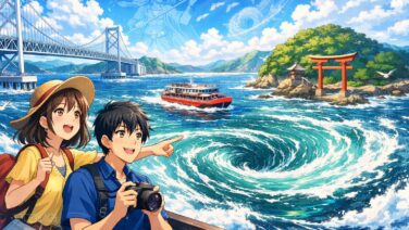 鳴門海峡の渦潮をベストタイミングで見る方法から、渦の道と観潮船の違い、アクセス情報、古代神話との関係までを徹底解説。世界最大級の渦潮を体感しながら、科学と伝承が交差する鳴門海峡の魅力を深く味わえる観光ガイドです。