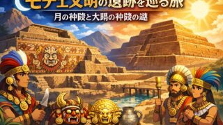 モチェ文明とは?ペルー北部に栄えた古代文明の特徴や歴史を解説。月の神殿(フアカ・デ・ラ・ルナ)や太陽の神殿(フアカ・デル・ソル)の謎、壁画や生贄儀式、遺跡の場所・観光情報までわかりやすく紹介します。