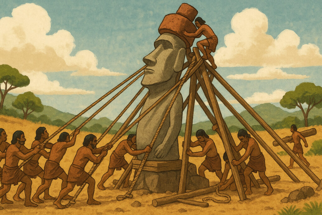 しかし、これらの方法では島の環境や資源状況と合わない点も多く、現在ではロープを使って像を左右に揺らしながら前進させる、いわゆる“歩かせる”方法が有力視されています。
