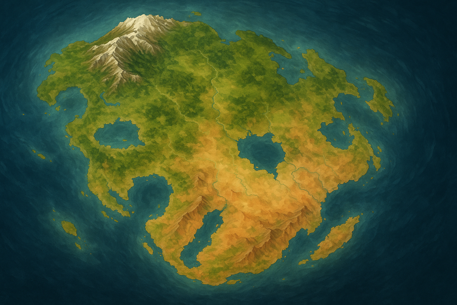 中央部には広大な高原地帯や複数の山脈が連なり、火山活動や造山運動によって形成された険しい地形が広がっていました。