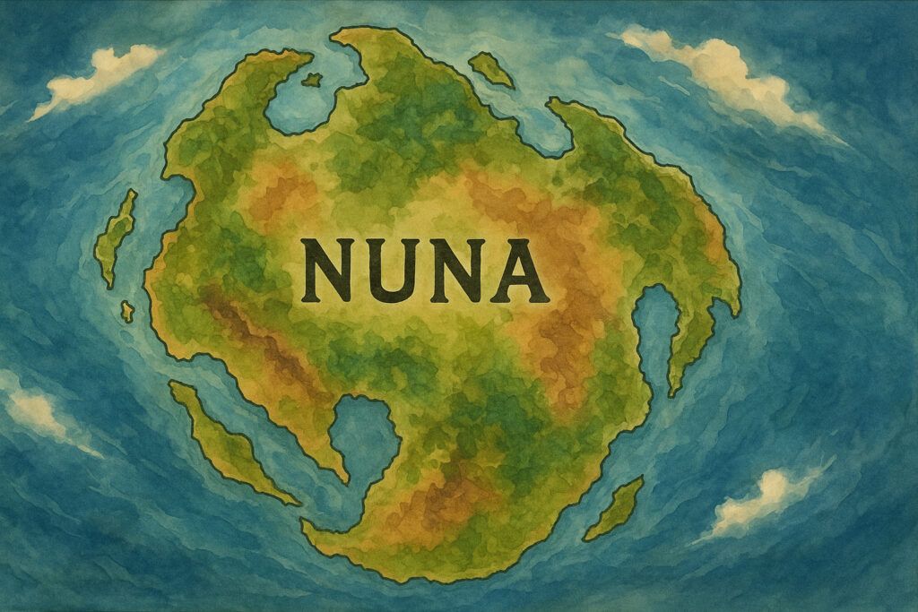 ヌーナ大陸は、現在の北アメリカ、グリーンランド、スカンジナビア、シベリア、さらには一部の古代大陸片を含むとされる広大な陸地が、一つの連続した陸塊として結びつき形成された超大陸です。
