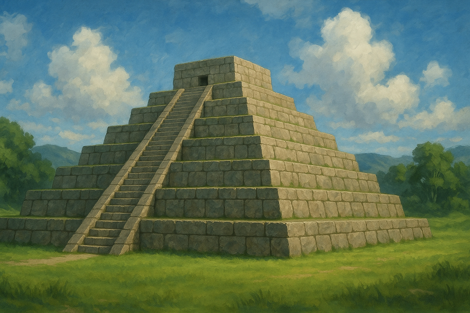階段状に築かれた墳丘は、古代人が天上と地上をつなぐ象徴的空間を表現したものかもしれません。