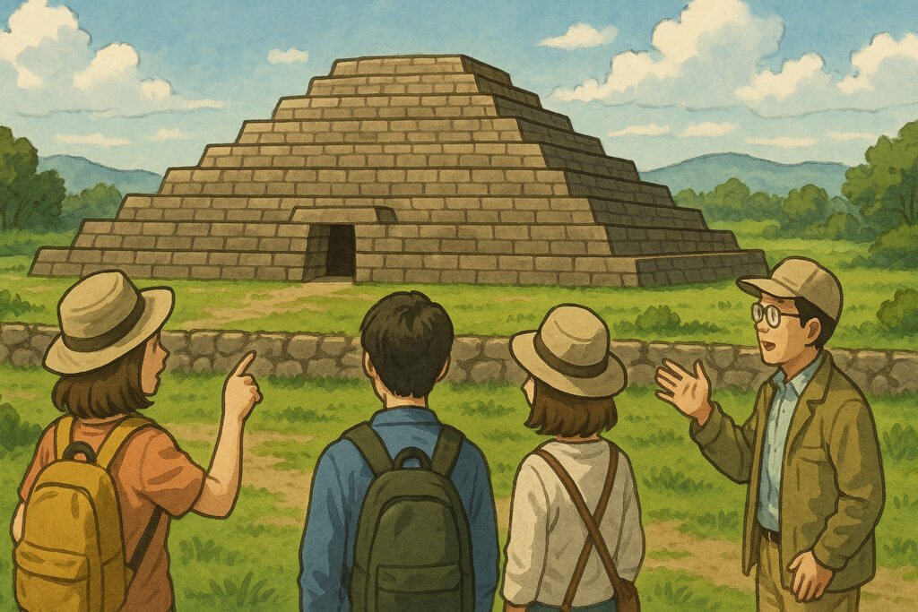 この造形は日本の古墳の中でもきわめて稀で、まるで異国のピラミッド建築を思わせる独自性を持ちます。