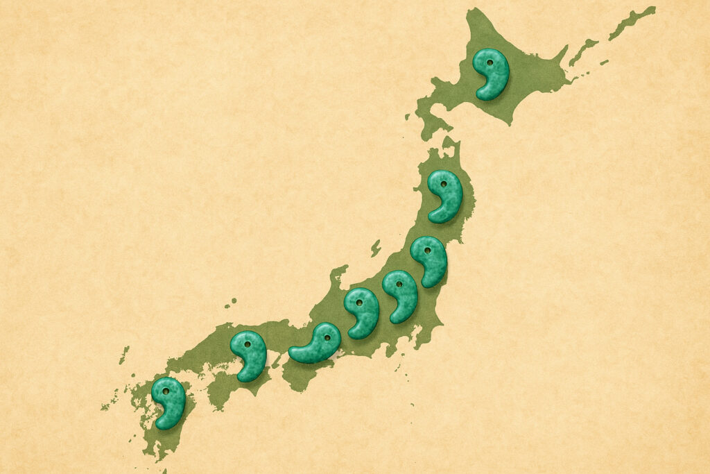 勾玉の形がなぜ全国的に共通しているのか、その起源がどこにあるのかは未解明のままです。