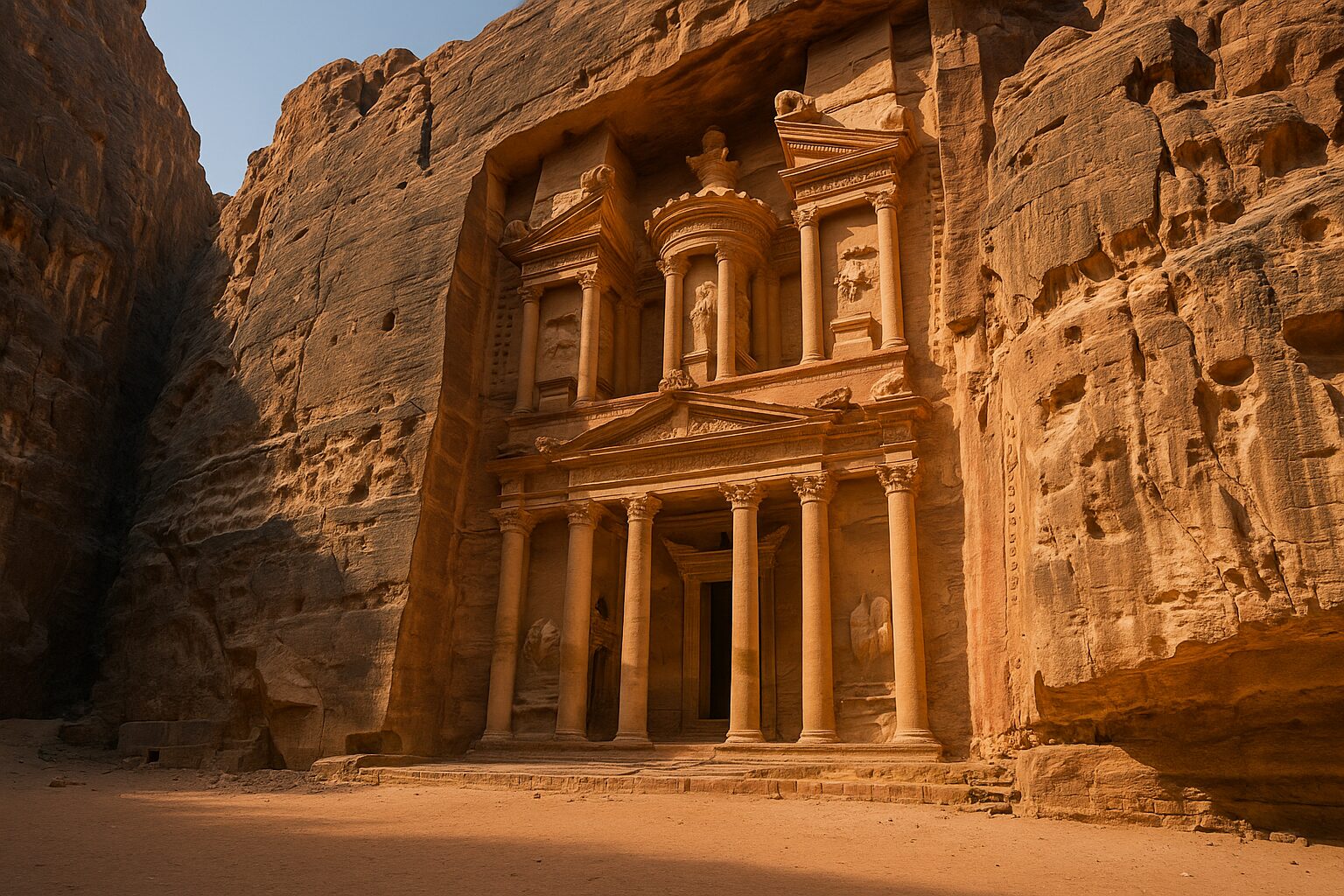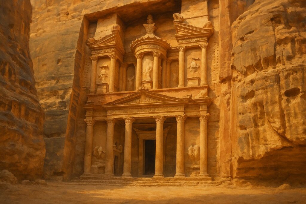 まるで自然と人間が共に創り上げた芸術作品のようであり、訪れる者はその光景に息を呑むでしょう。特に、ペトラを象徴する「エル・ハズネ(Al-Khazneh)」の壮観な姿は、世界中の旅人を魅了し続けています。