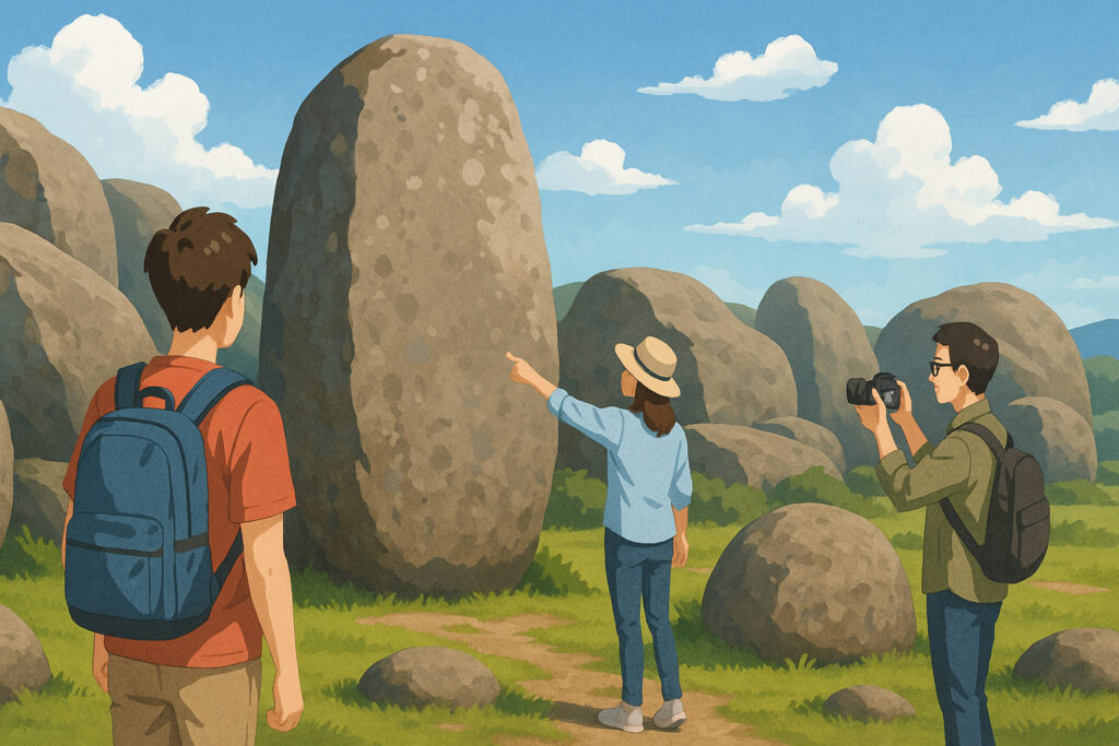 風に包まれ、陽の光を浴びる巨石の前で、私たちは遠い過去と今をつなぐ見えない糸を感じるでしょう。