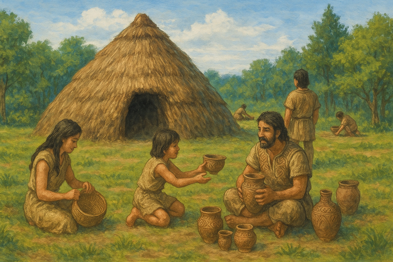 デーノタメ遺跡でも、複数の住居跡や共同作業を行うためのスペースが確認され、集団生活が営まれていたことがうかがえます。