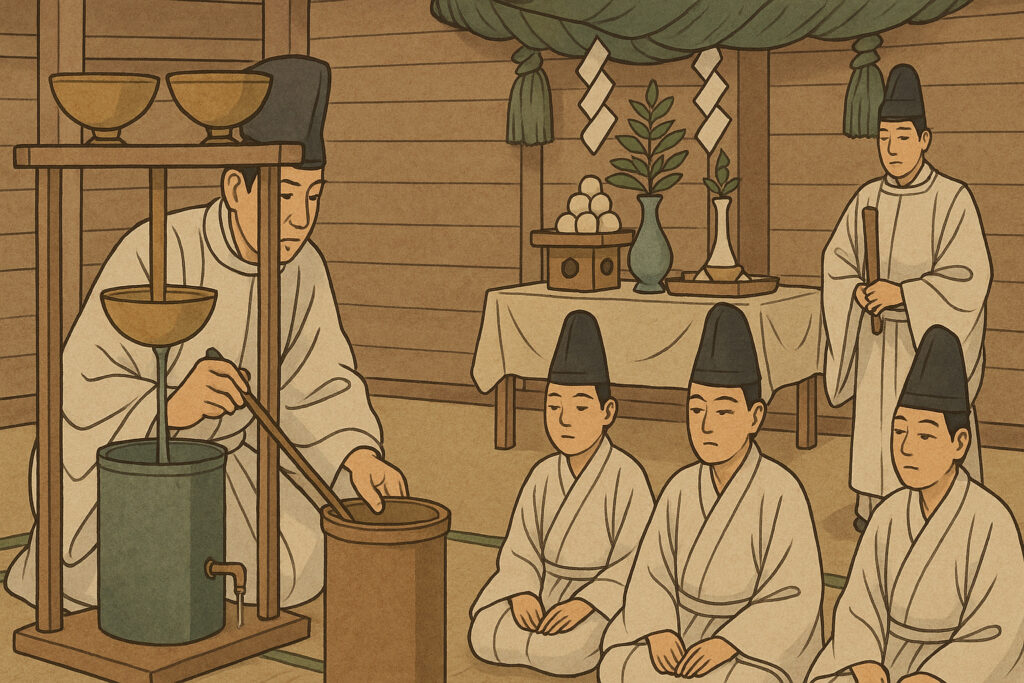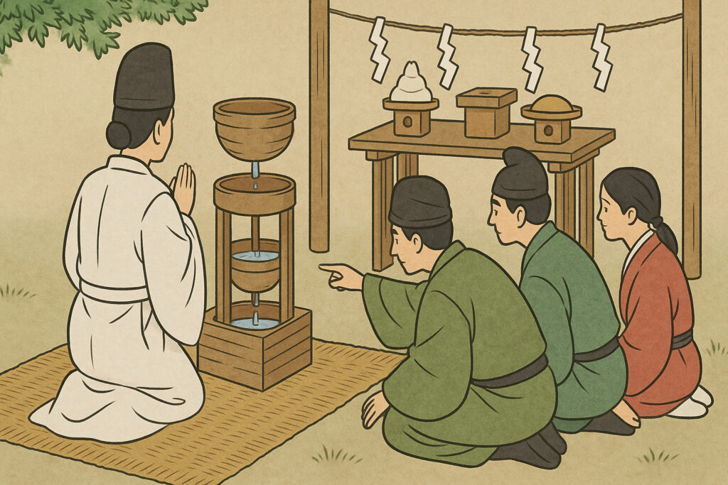 漏刻が示す時刻は、儀式の神聖性を守る基準となり、参加者の動きを統一するための絶対的な指標でもありました。