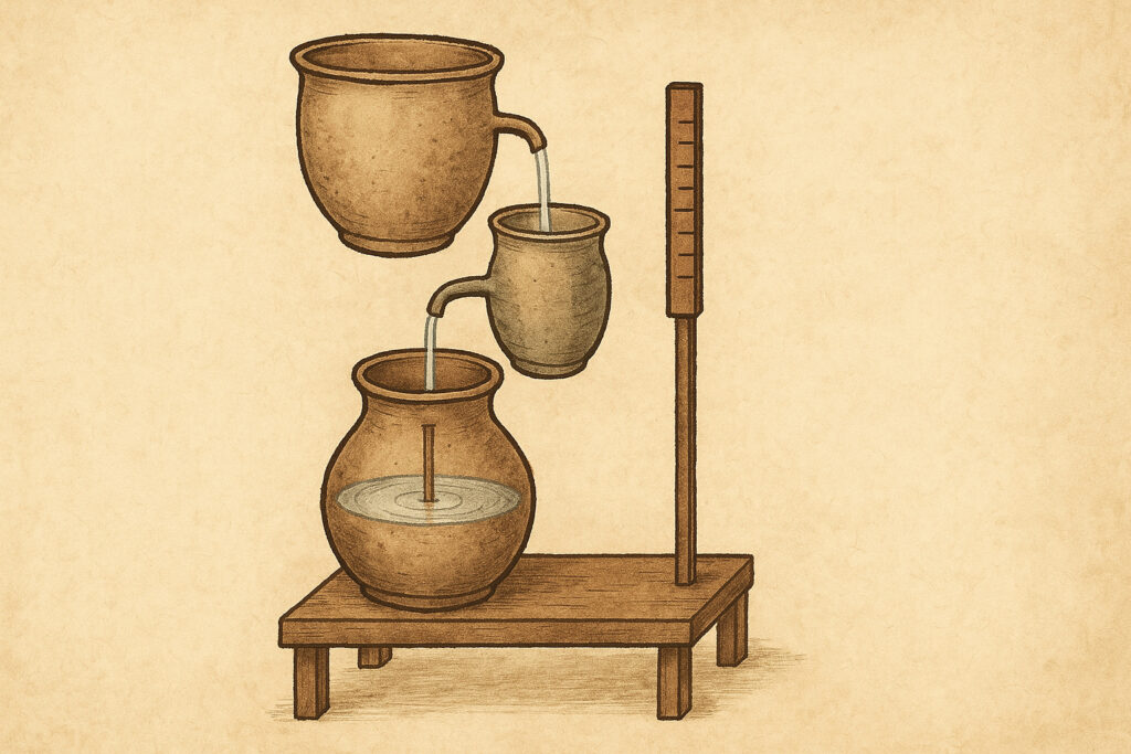 初期の漏刻は比較的単純な構造でしたが、奈良時代から平安時代にかけては水流を安定させる工夫が凝らされ、複数の容器を段階的につなぐことで精度を高めたものも登場しました。