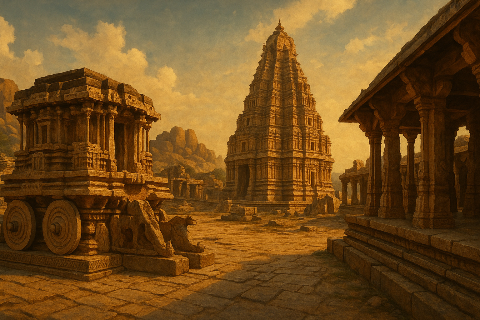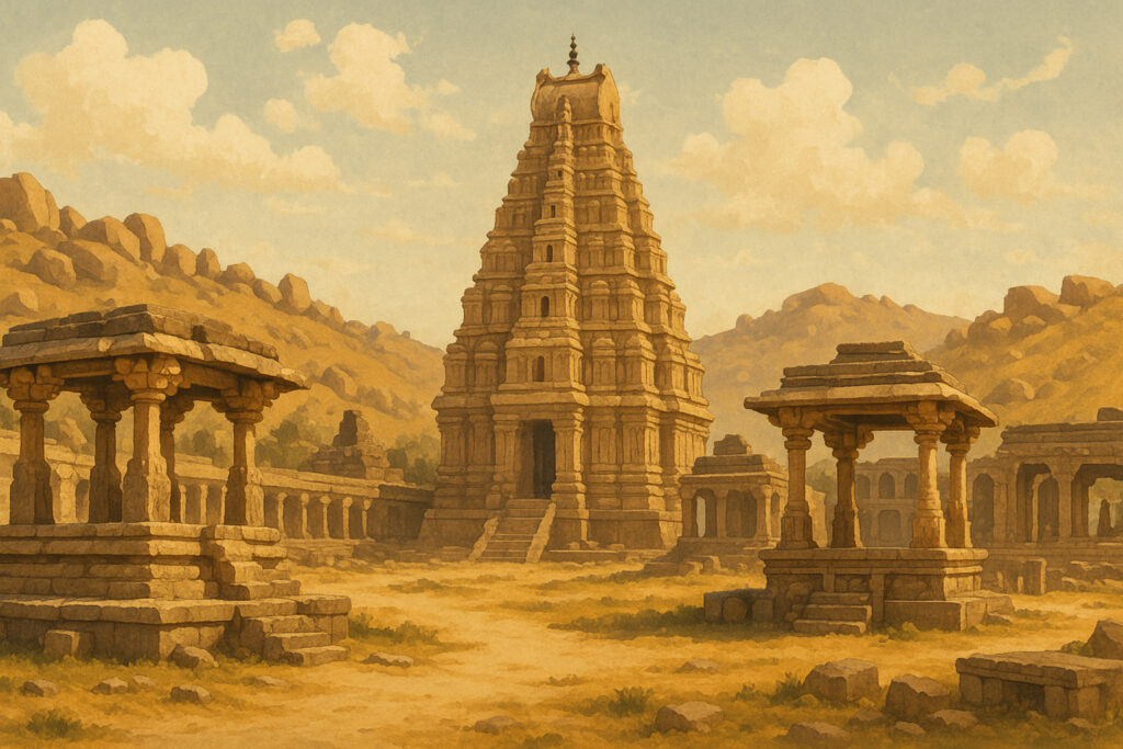 ヴィジャヤナガル王国は、イスラーム勢力から南インドのヒンドゥー文化を守る要として成立し、経済・文化・軍事の中心として急速に発展しました。
