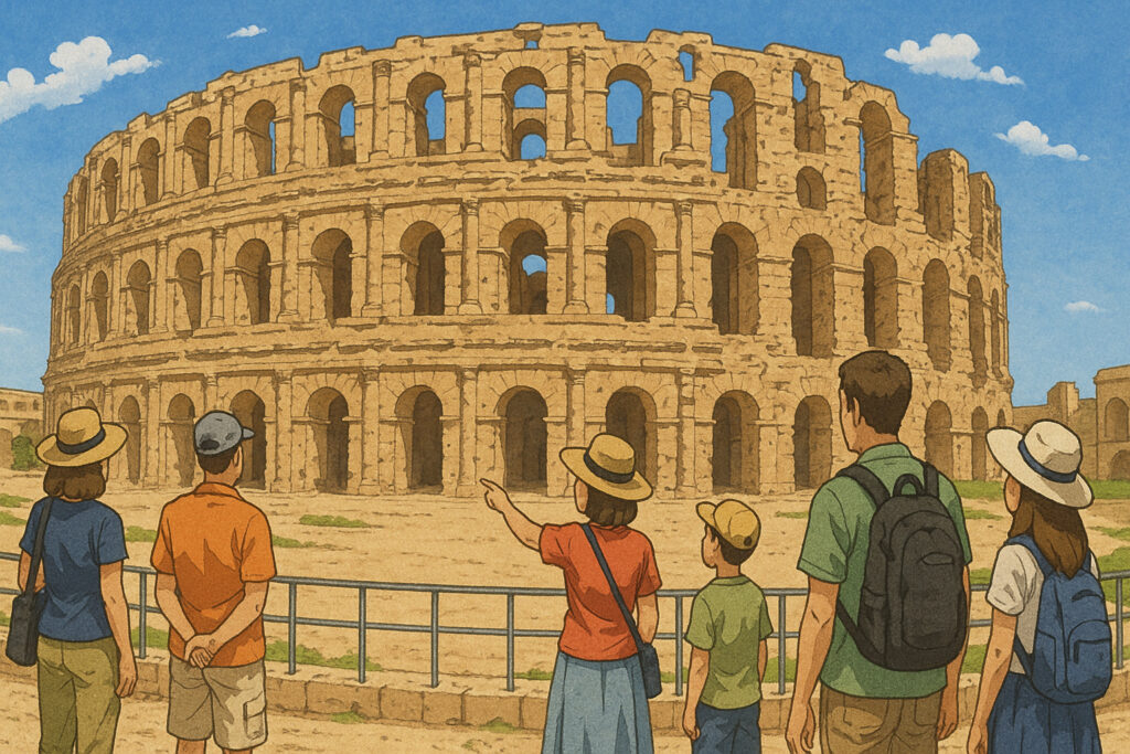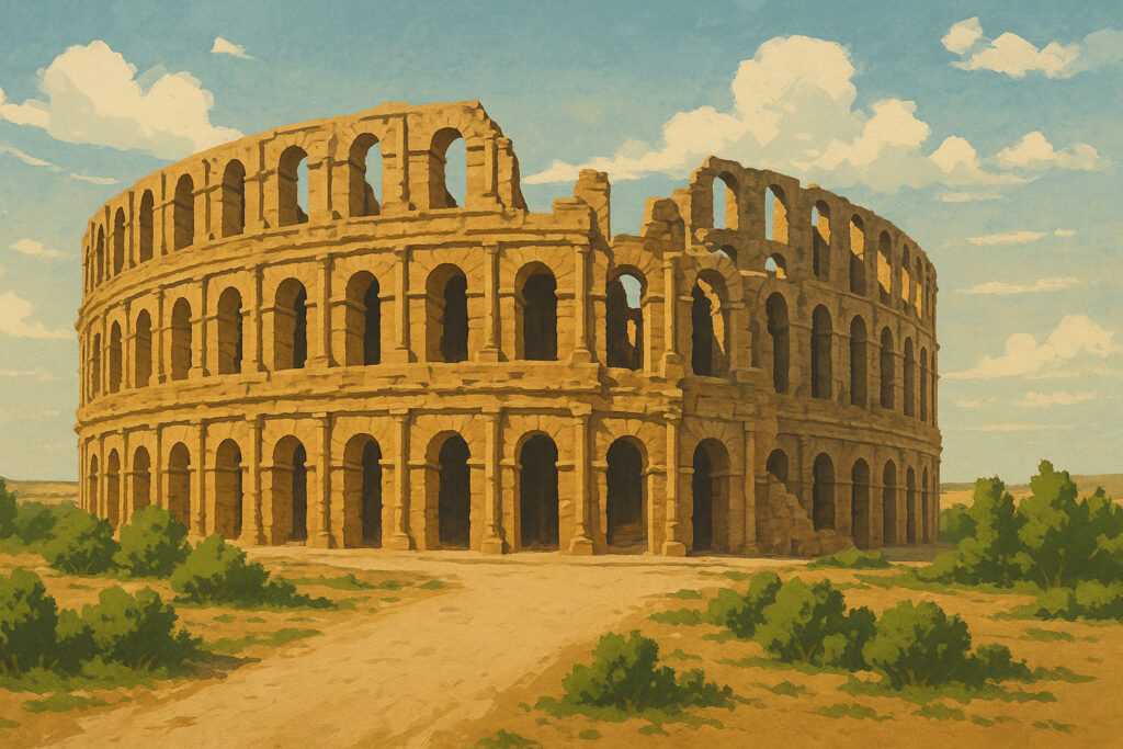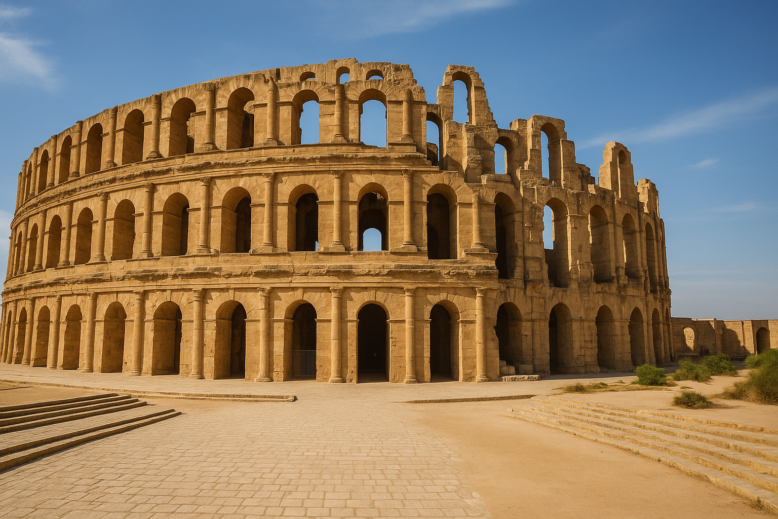 この闘技場は、ローマ帝国の北アフリカ支配の象徴であると同時に、帝国全体の文化と経済をつなぐ重要な結節点でもありました。