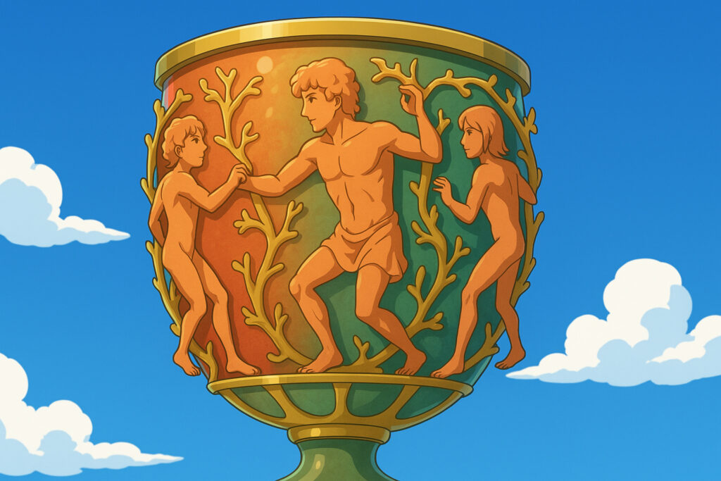 その中でも「ライコス」という登場人物との絡みが象徴的で、杯のデザインが古代の宗教観や王権観を反映していると解釈されます。