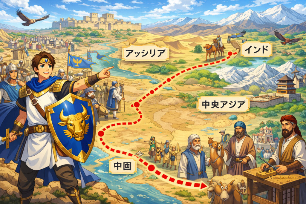 一部の研究者や民間伝承では、失われた十部族がアッシリア支配下をさらに離れ、中央アジアを経由してインドや中国方面へ移動したとする説が語られてきました。