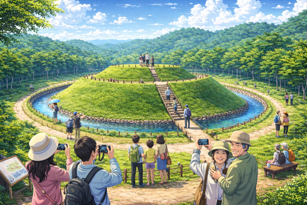 古墳群を活用した文化観光やガイド付き見学会、関連イベントの開催は、地域外からの来訪者を呼び込み、観光振興や地域の活性化に一定の役割を果たしています。