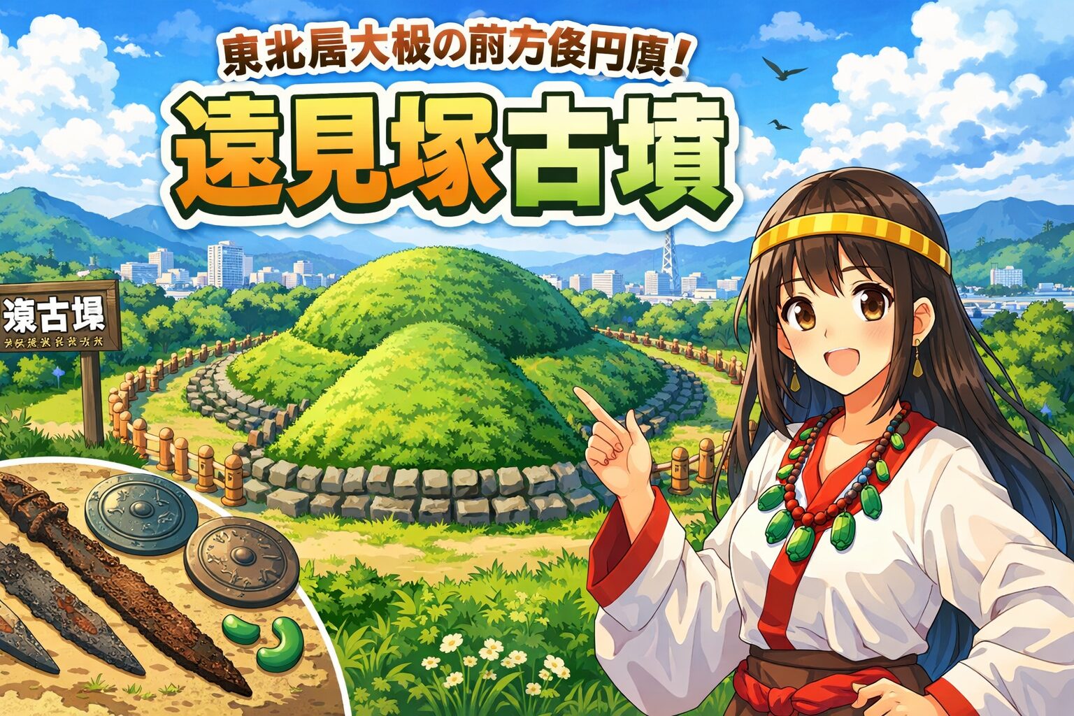 本記事では、遠見塚古墳の基本情報や築造背景といった基礎知識から、被葬者に関する諸説、出土品が示す歴史的意味、さらには実際に訪れる際の見学ポイントやアクセス方法までを、できるだけわかりやすく整理して解説します。