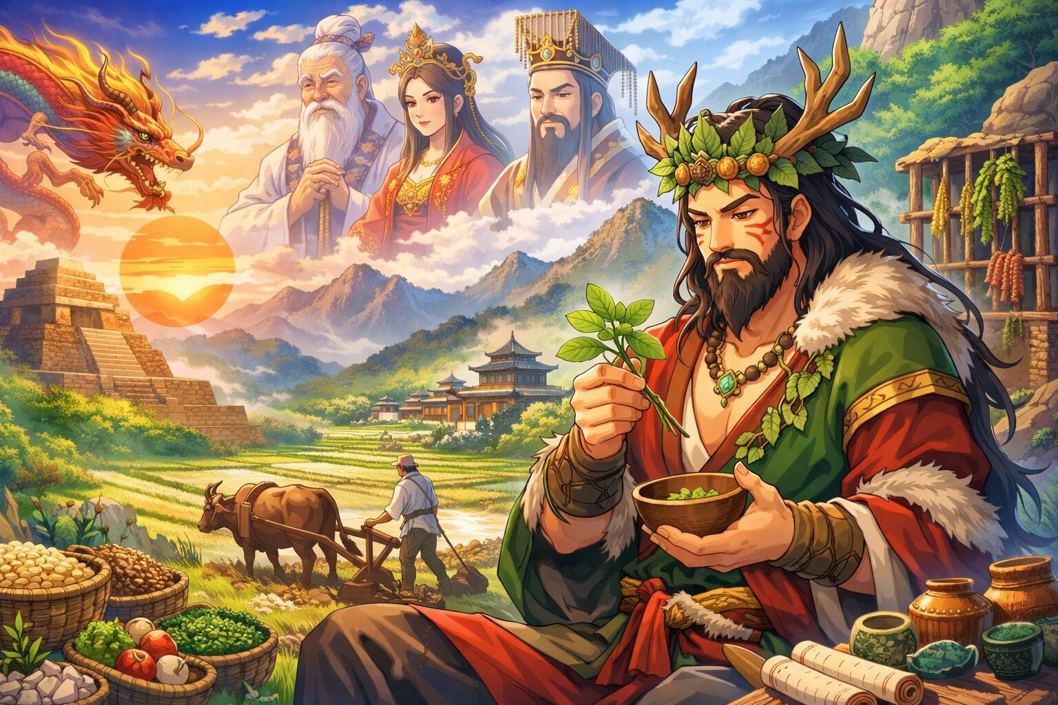 本記事では、神農伝説の神話的背景から医薬・農耕との関係、さらに現代に残る信仰やゆかりの地、そして神話が持つ象徴的意味までを総合的に解説し、その全体像に迫ります。