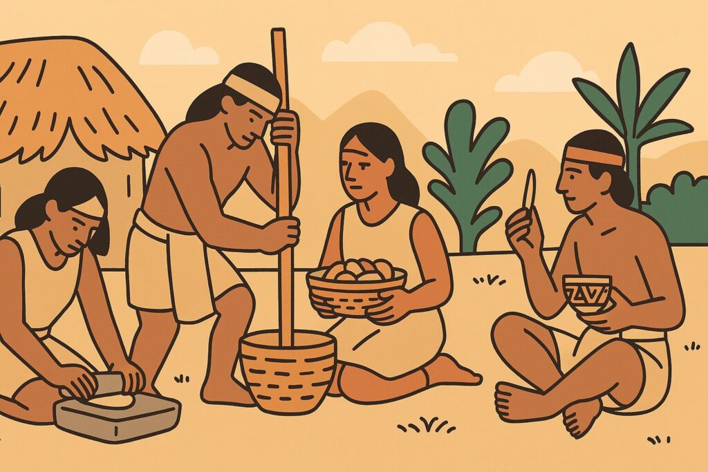 食文化の基盤となっていたのはトウモロコシの栽培で、これに豆類やカボチャなどが加わることで安定した食生活が成り立っていました。